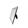 Rama este metalica lucioasa si poate fi asezata pe masa sau fixata pe perete in pozitie verticala ori orizontal.